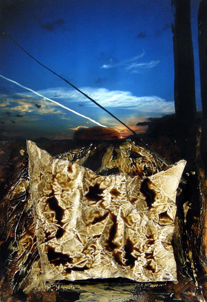 Collage on Photo with Paper and Varnish