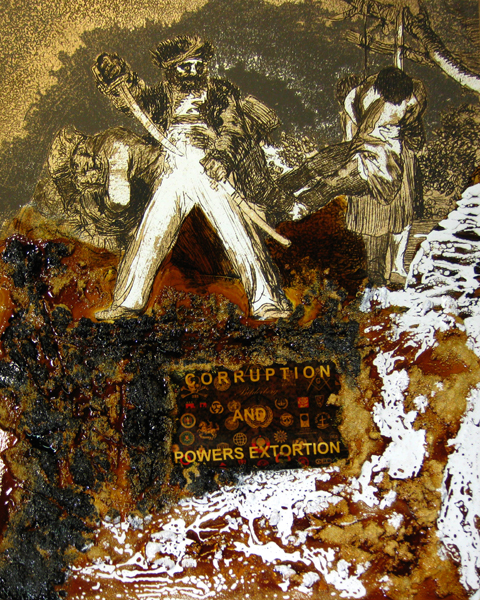 MixedMedia/Collage/Oil/Enamel/Sand/ and Varnish on Wood